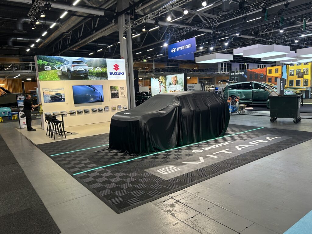 Starten blev en förhandsvisning på eCar Expo på Stockholmsmässan. Där vi stod för konstruktion, byggnation och projektledning av mässmonter. Allt blev ett koncept som numera också känns igen ute i flertalet av Suzuki återförsäljarnas bilhallar, ett projekt vi ska återkomma till mer senare.